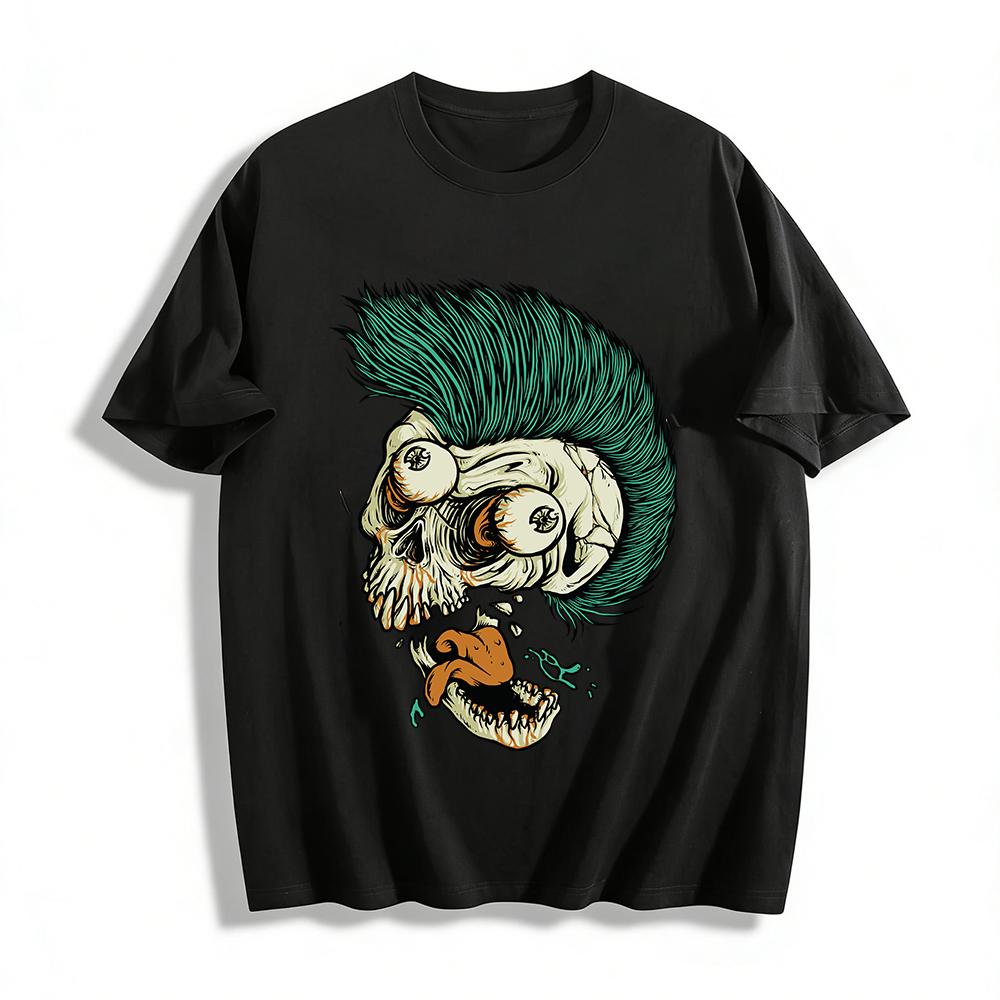 Ausgefallenes Punk-Style Pop-eyed Skull Grafik-T-Shirt Reines Baumwoll-T-Shirt