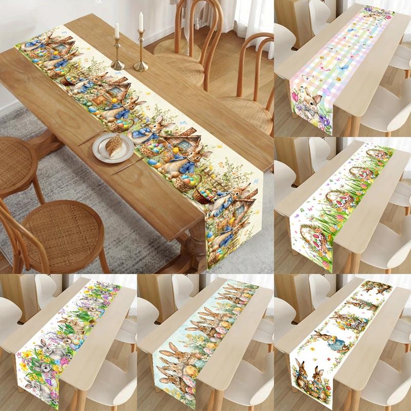 Vintage Osterhase Tischläufer Kaninchen Eier Blume Tischdecke Frühling Osterdekorationen Für Haus Küche Esstisch Dekor