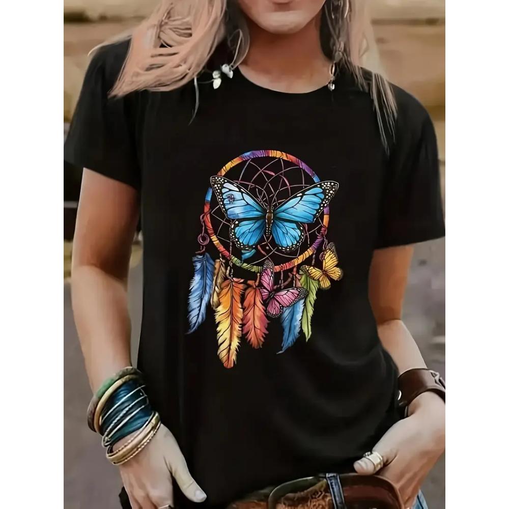 90s T Shirt Butterfly Graphic Print T-shirt Short Sleeve Crew Neck Casual Top for Summer Spring Women's Clothing Top Tee