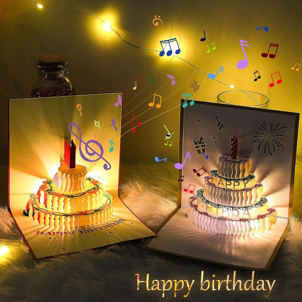 Geburtstags-Musikgrußkarten 3D Pop-Up mit LED Kommt mit Umschlag für Kinder Junge Mädchen Babyparty Erste Geburtstagsfeier