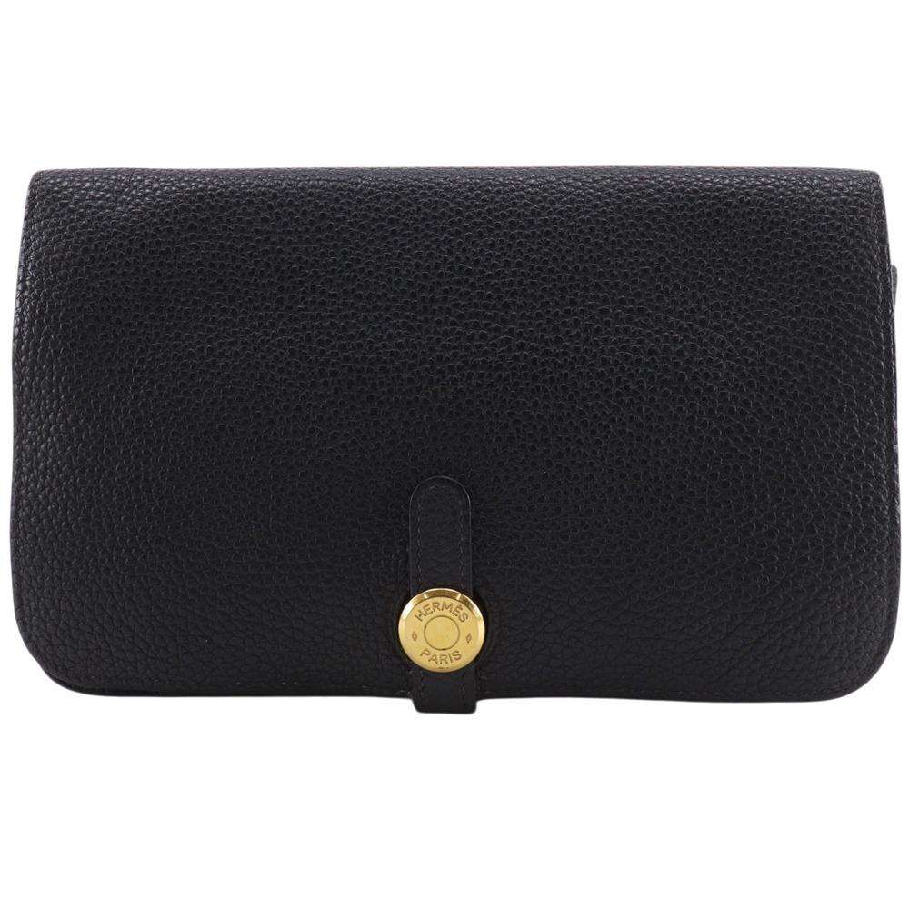 HERMES Dogon GM Purse Black / Gold Hardware Taurillon Clemence unisex Used