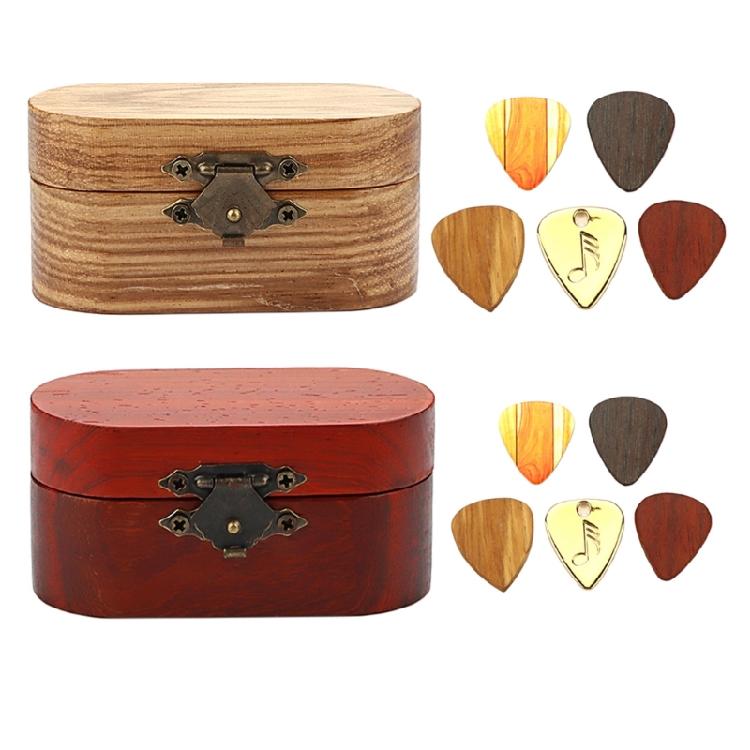 Tragbarer Gitarrenplektrum-Box-Halter mit 5 Gitarrenplektren Holz Gitarrenplektrum-Aufbewahrungsbox Leichtgewichtige Gitarrenplektren-Koffer