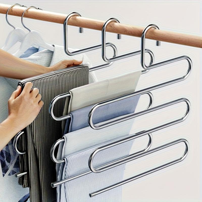 5-stufiger S-förmiger platzsparender Kleiderschrank-Organizer aus Edelstahl - Rutschfester, abdruckfreier Metallhosenbügel für Jeans, Hosen und Röcke
