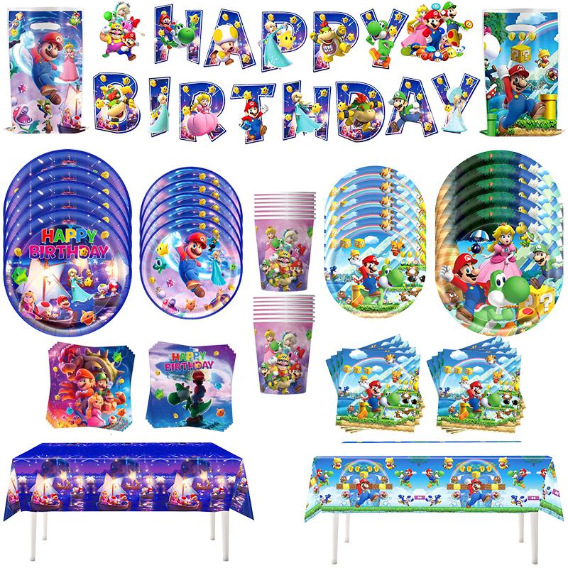 Anime Cartoon Mario Birthday Party Decoration, Super Mario Bros Disposable Tableware Tablecloth Banner Napkin Party Supplies