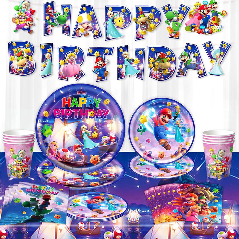 Anime Super Mario Bros Geburtstagsparty Dekoration Mario Luigi Einweggeschirr Tischdecke Serviette Teller Geschenktüte Partyzubehör