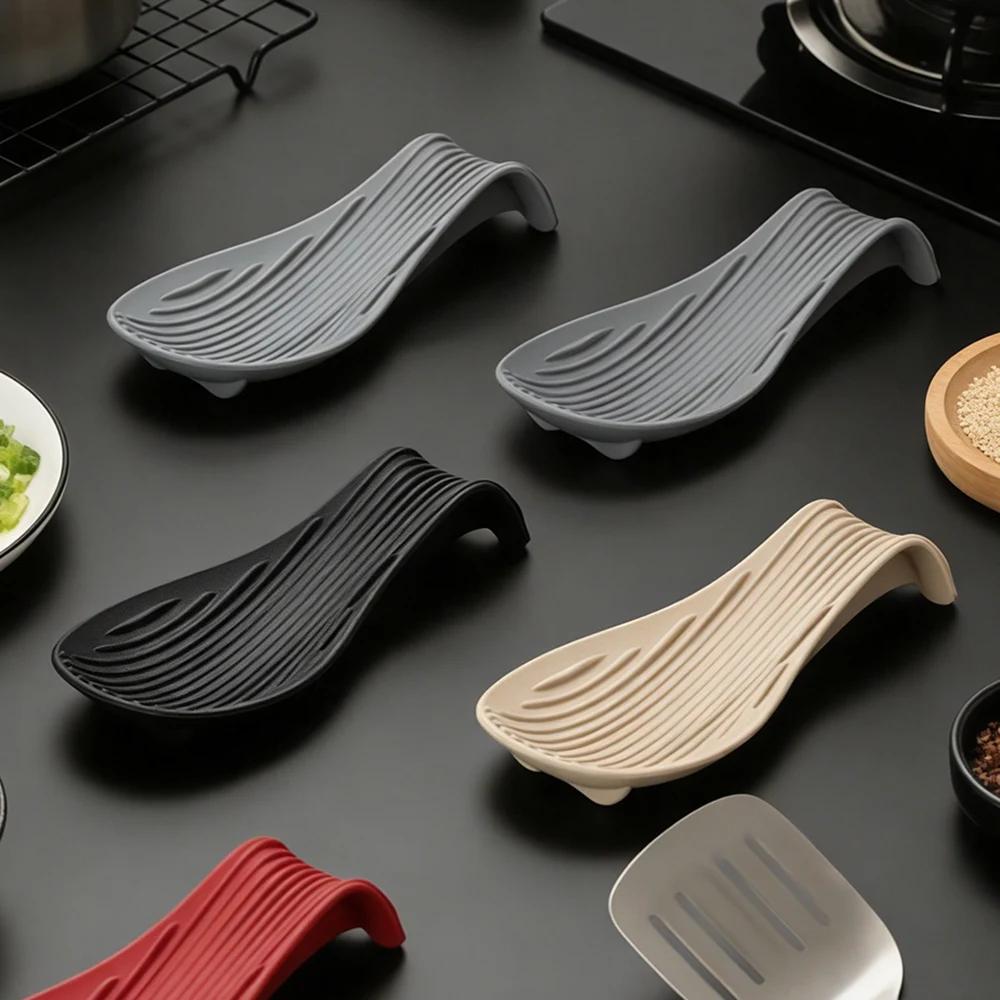 1 Stück Silikon Küchenutensilien-Tablett Küchenspatel Suppenlöffel Silikonlöffelhalter Haushalt Dicke Isolierte Silikonlöffelunterlage