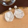 Simple temperament 111 silver needle pearl shell stud earrings female, design sense fringed fan shell earrings versatile earrings