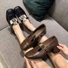 Γαλλικά ρετρό τετράγωνο μπροστινό μέρος χοντρό τακούνι μονόπατα γυναικεία άνοιξη και φθινόπωρο νέα βραδινά στυλ κορεατική έκδοση νεράιδα ψηλά τακούνια Mary Jane μικρά δερμάτινα παπούτσια