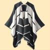 New ladies autumn and winter warm scarf shawl cape simple large horizontal strip jacquard cape office warm blanket