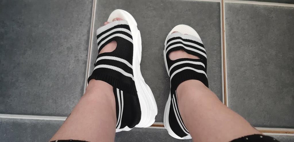 Women's Stretch Fabric Sandals Woman Shoes Slip On Hollow Out Peep Toe Thick Bottom Platform Casual Cover Heel