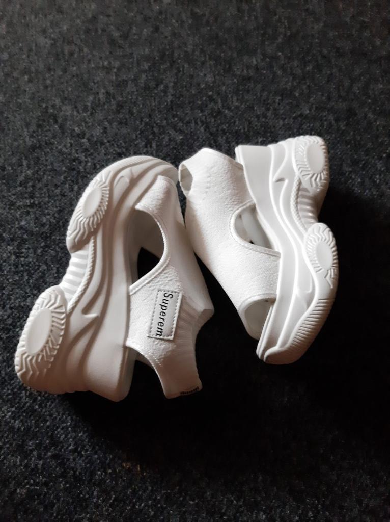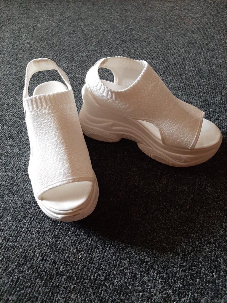 WTEMPO Hollow Out Peep Toe Wedges Gladiator Sandals Retro Casual Women Shoes Black Stretch Fabric Platform Heighten Shoes