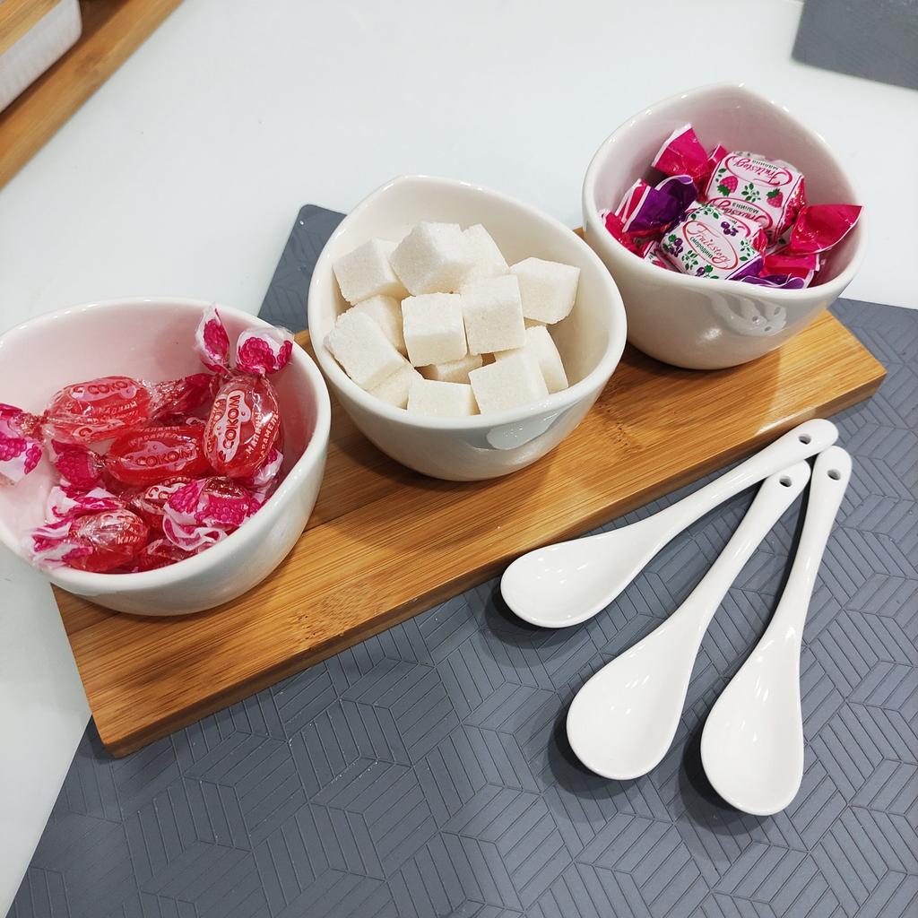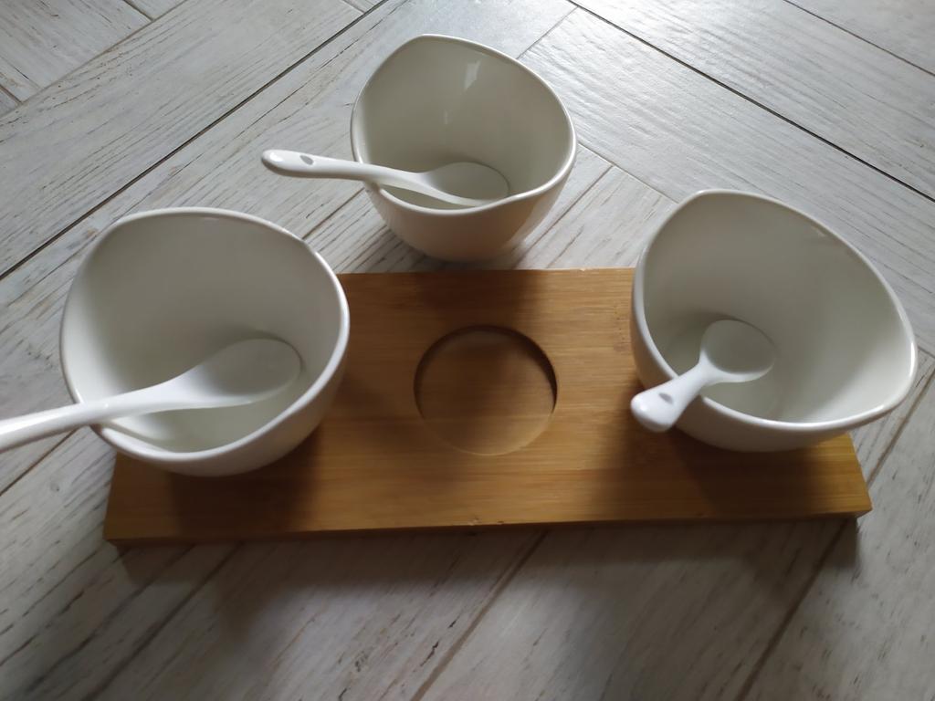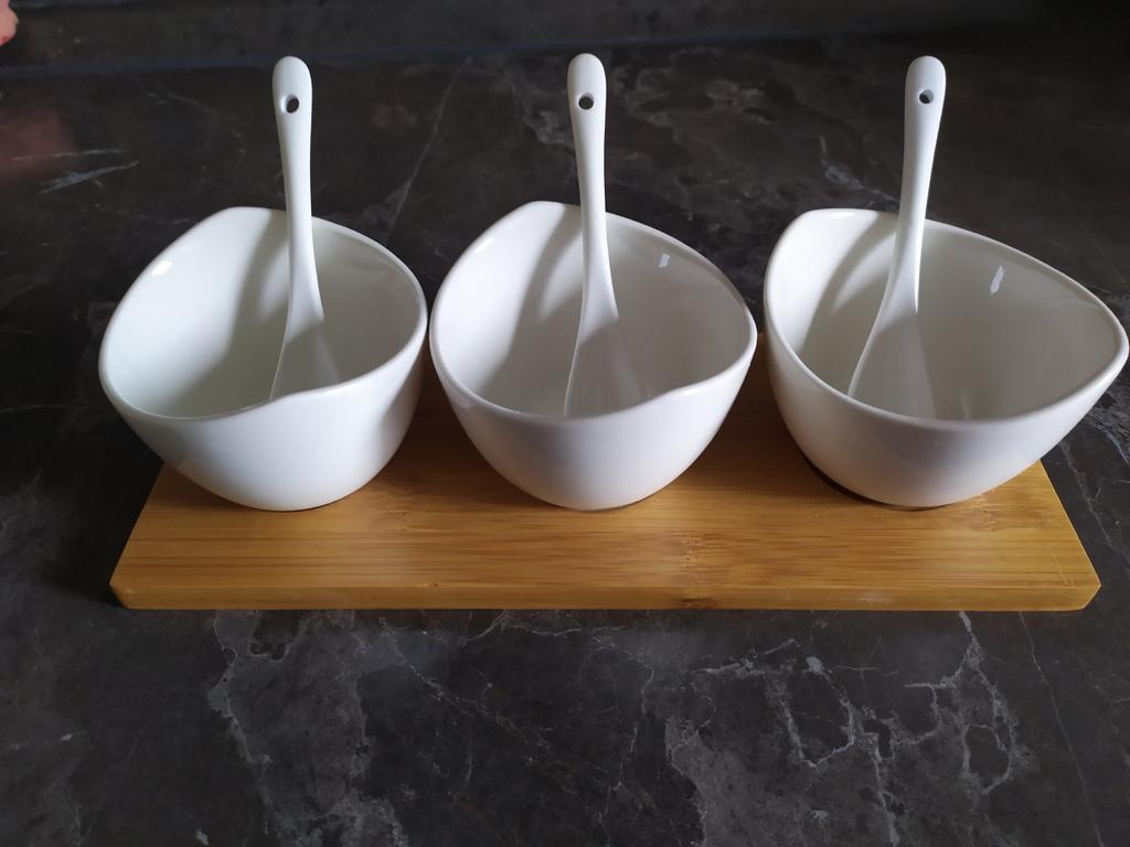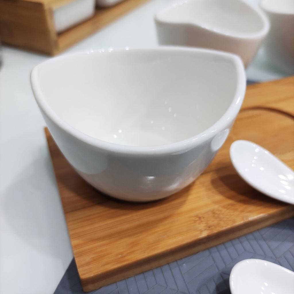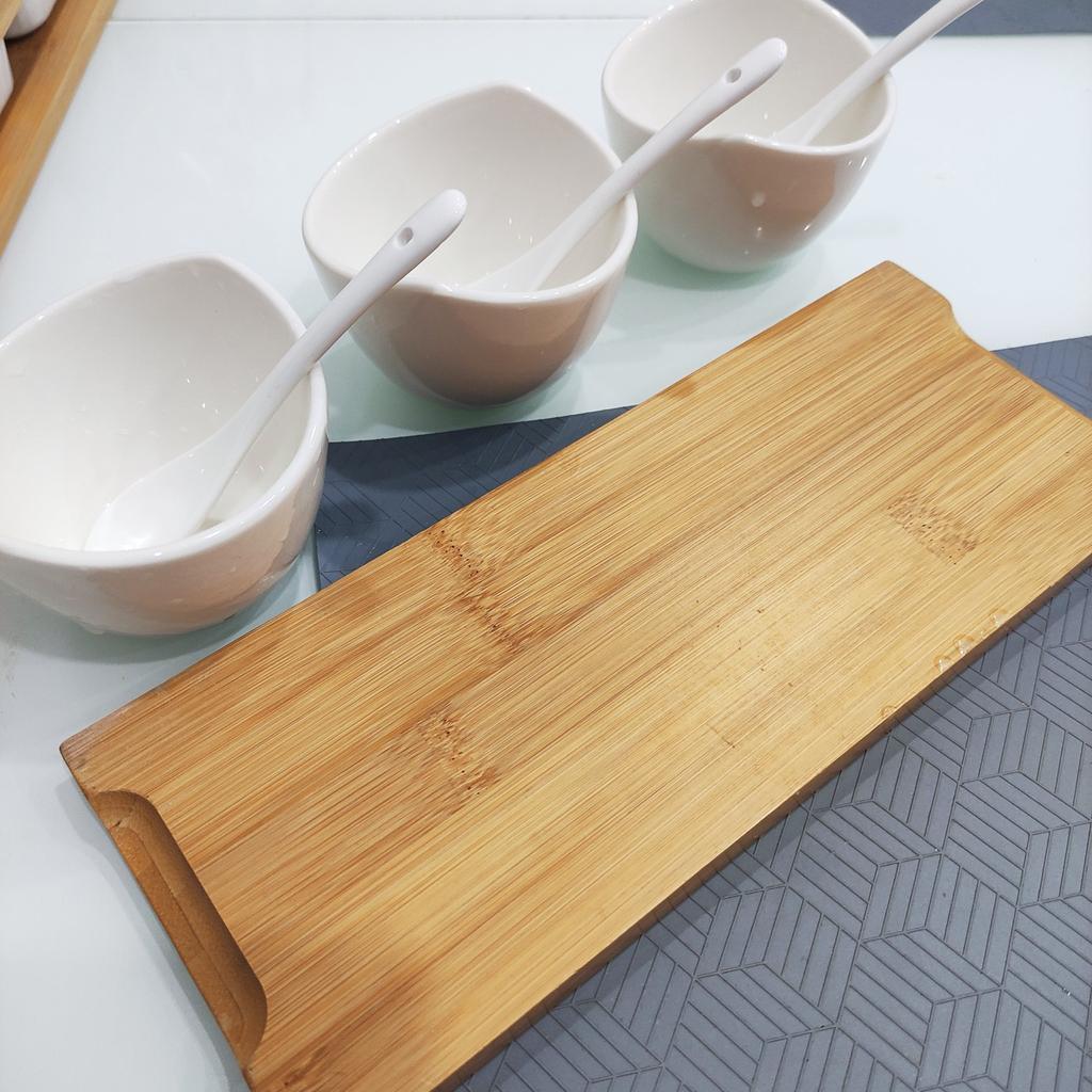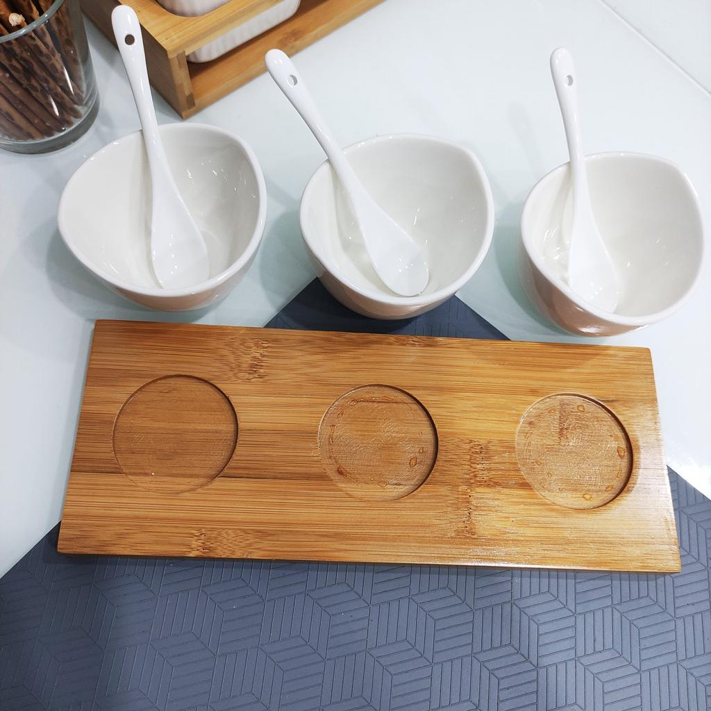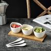 Ceramic Bowl Bamboo Wood Tray Condiment Dip Sauce Ramekins Set Spoons On Bamboo Sampler Serving Tray