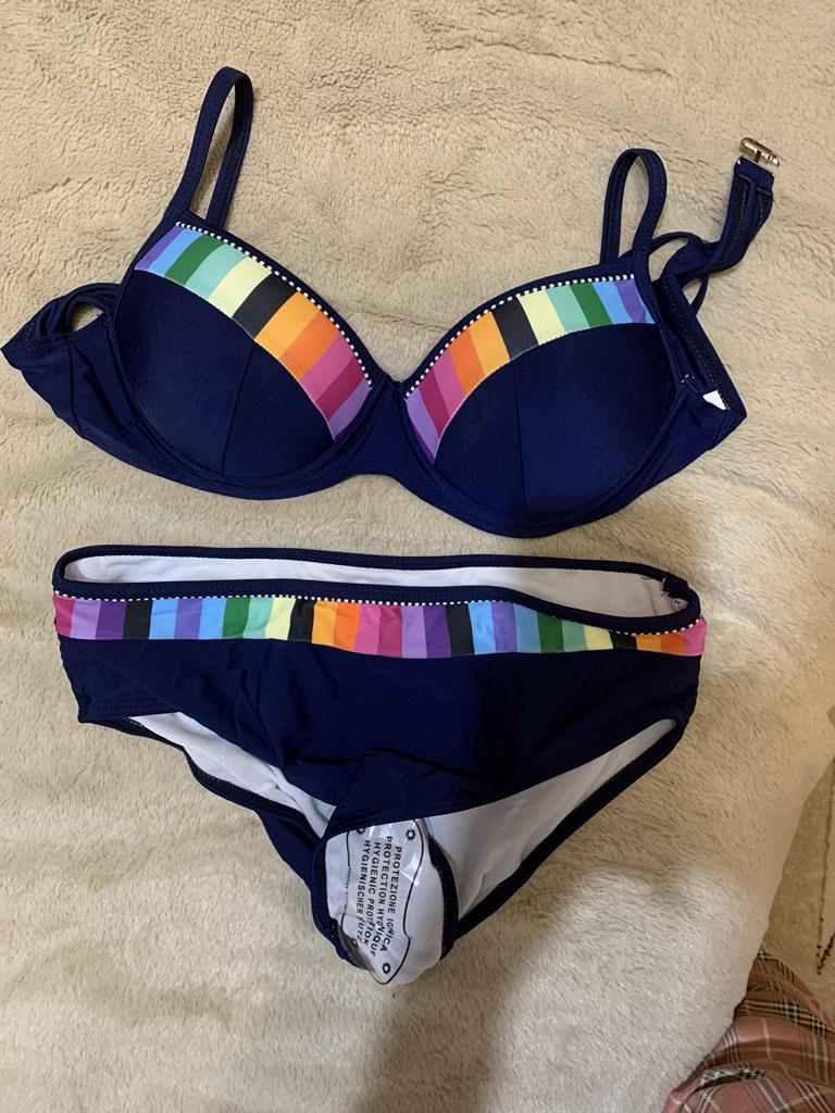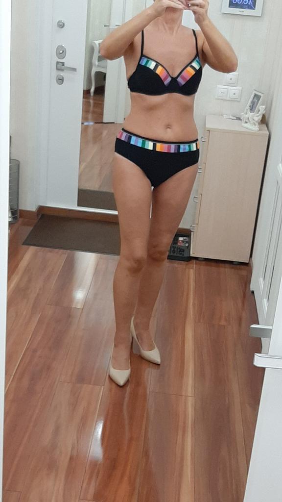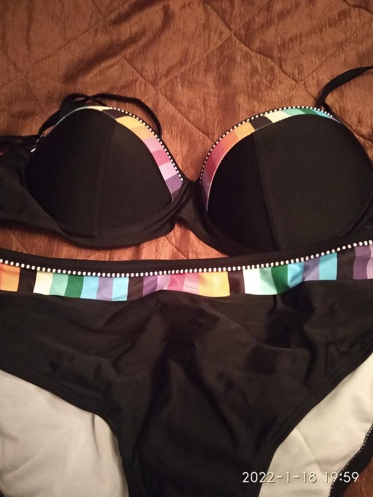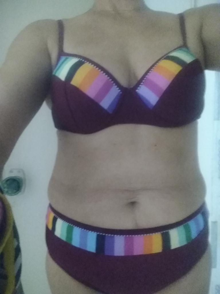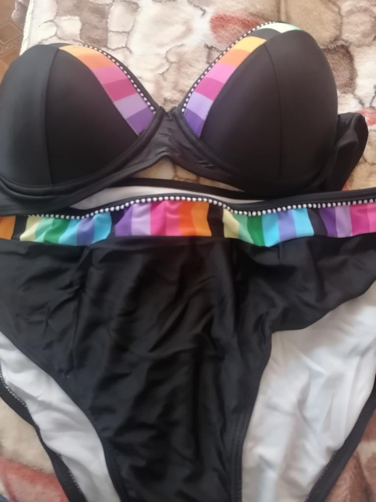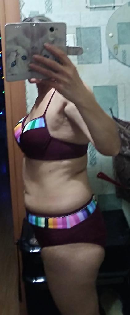 Cheerful swimsuit!🤩 Size L. My cup is 80C, so the bustier came up, although it protrudes a little on the sides. So for now it's 5⭐. Next the sun, the sea will show how good it is! The main thing is a good mood and positive! 🤩 Thank you for the product! ⭐ P.S. I try to expose myself less in a swimsuit. Here I took a risk. I know that comments can be different. Then I will delete.😒