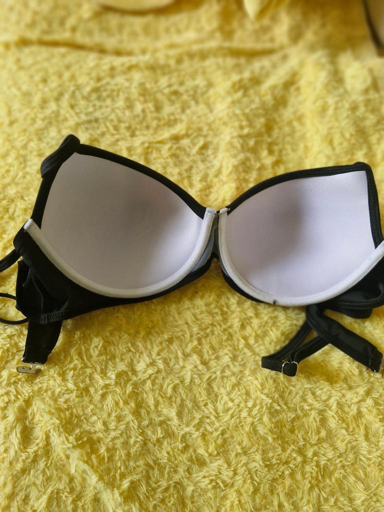 Very good for the price. Just wires to cut. Nothing bad. The shell of the bra is thick but no protection at the bottom of the swimsuit. The colors are very good and very good support at chest level.