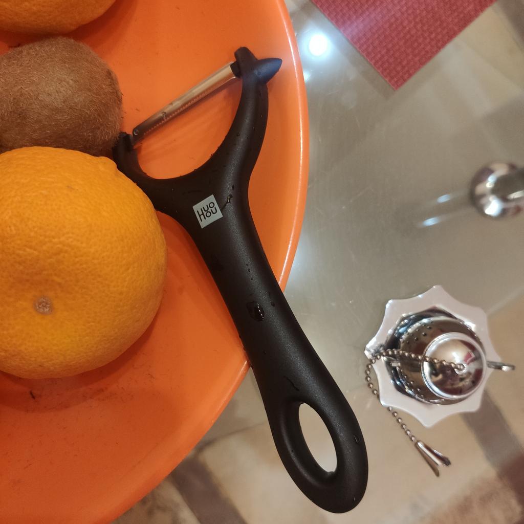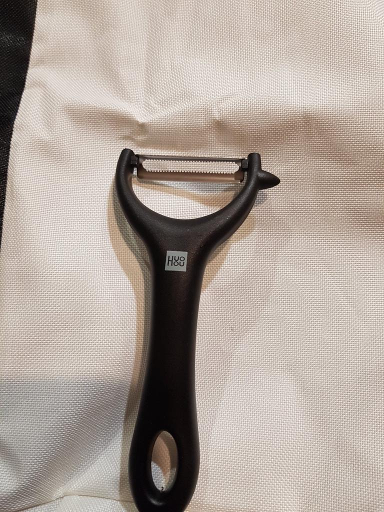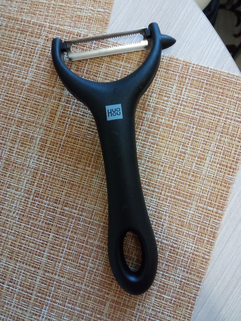 Slicer from HiAOMI. Removes the skin super economically. True, the capture is not large in width. It is very convenient for peaches, cuts off only the skin, does not capture anything superfluous. My rating: 5+