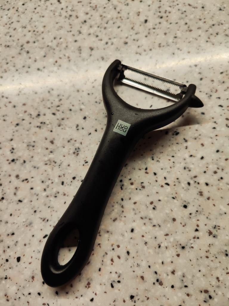 Excellent vegetable peeler. Pleasant to the touch handle material. The knife is serrated and strong enough. Cleaning medium thickness. There are also thinner ones. I hope it will last longer without deformation than the usual Chinese cheap analogue from the market. The cost is 4.27 euros.