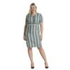 Fierte Women's Plus Size Dress Rg6684Y V-Neck Button Detail Short Sleeve Striped Sports Cotton Above Knee Navy Blue Green