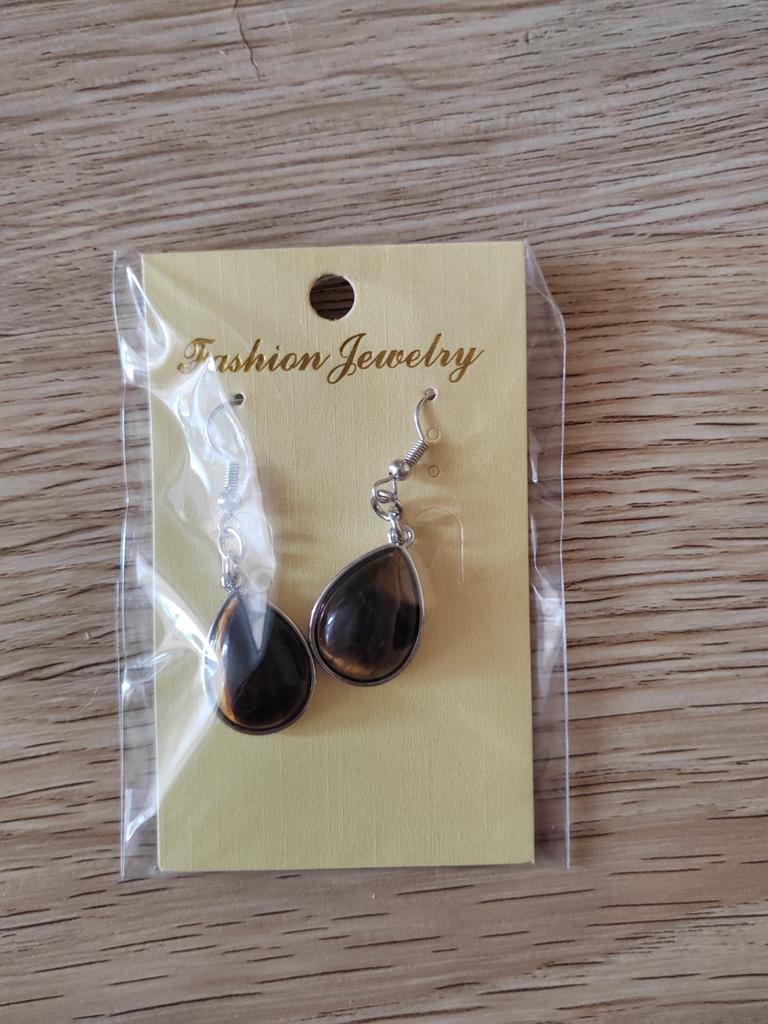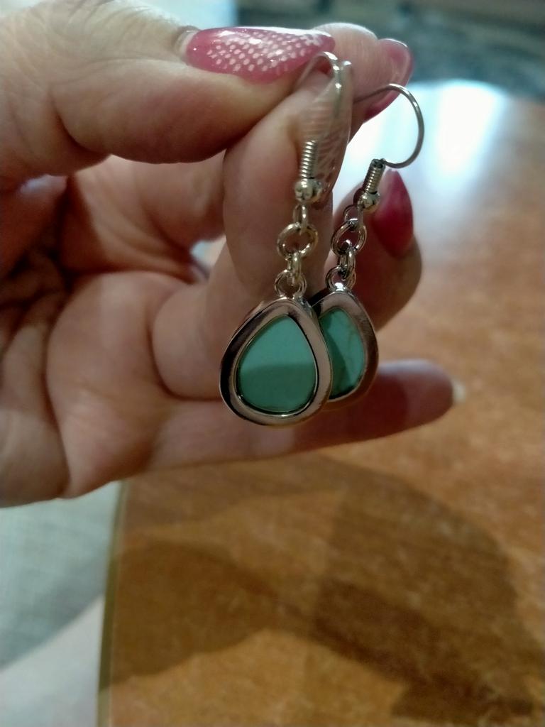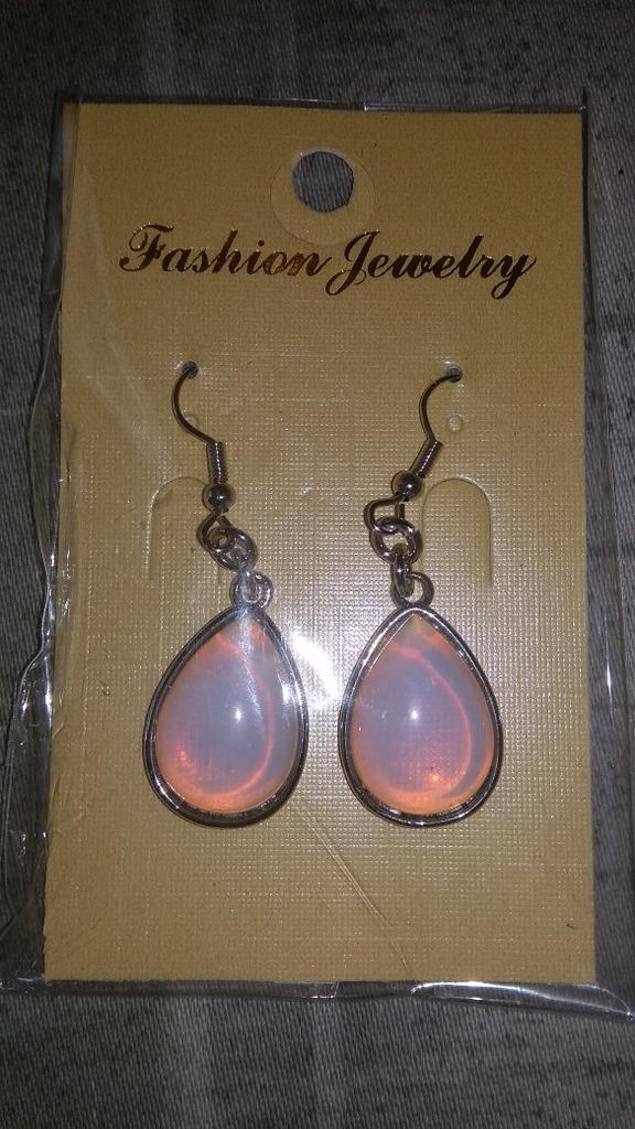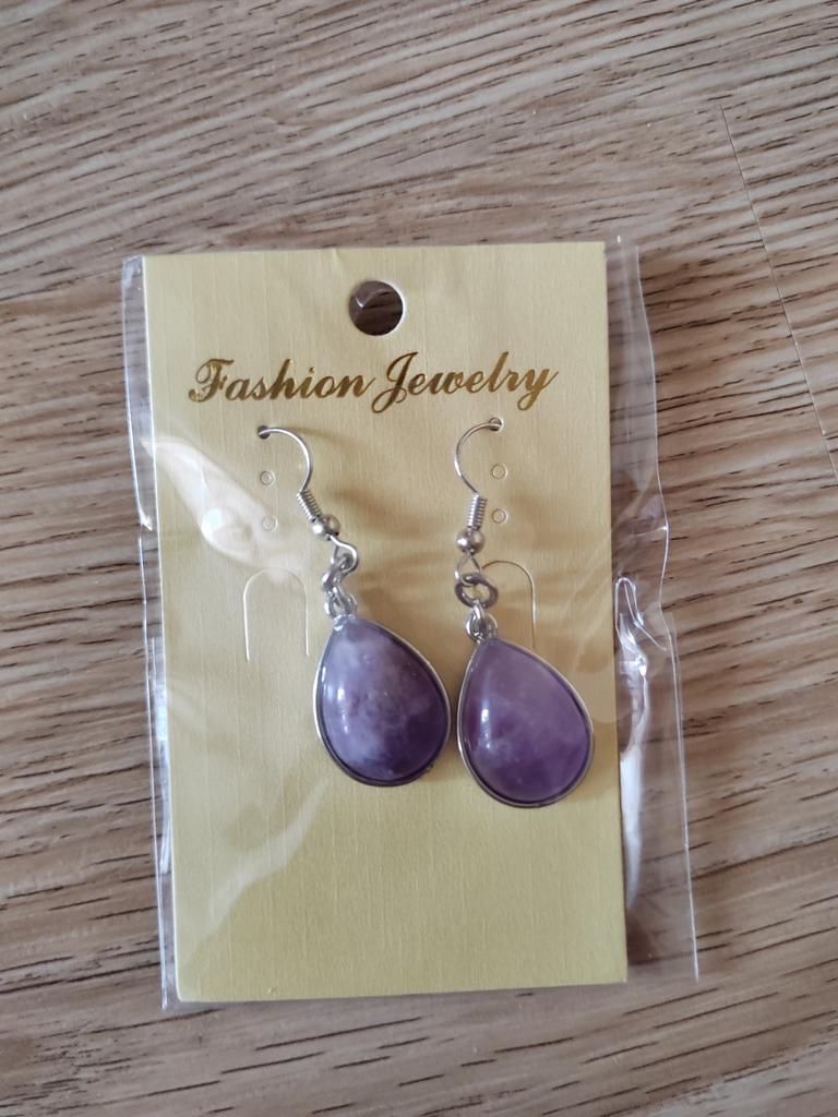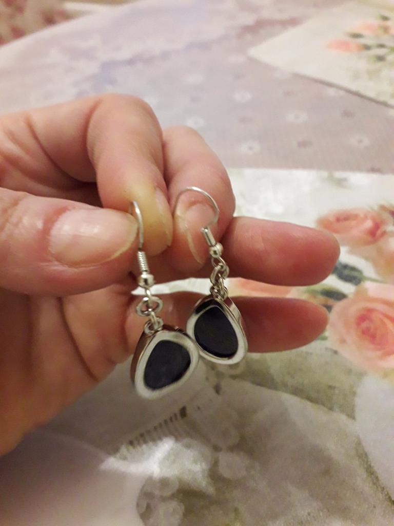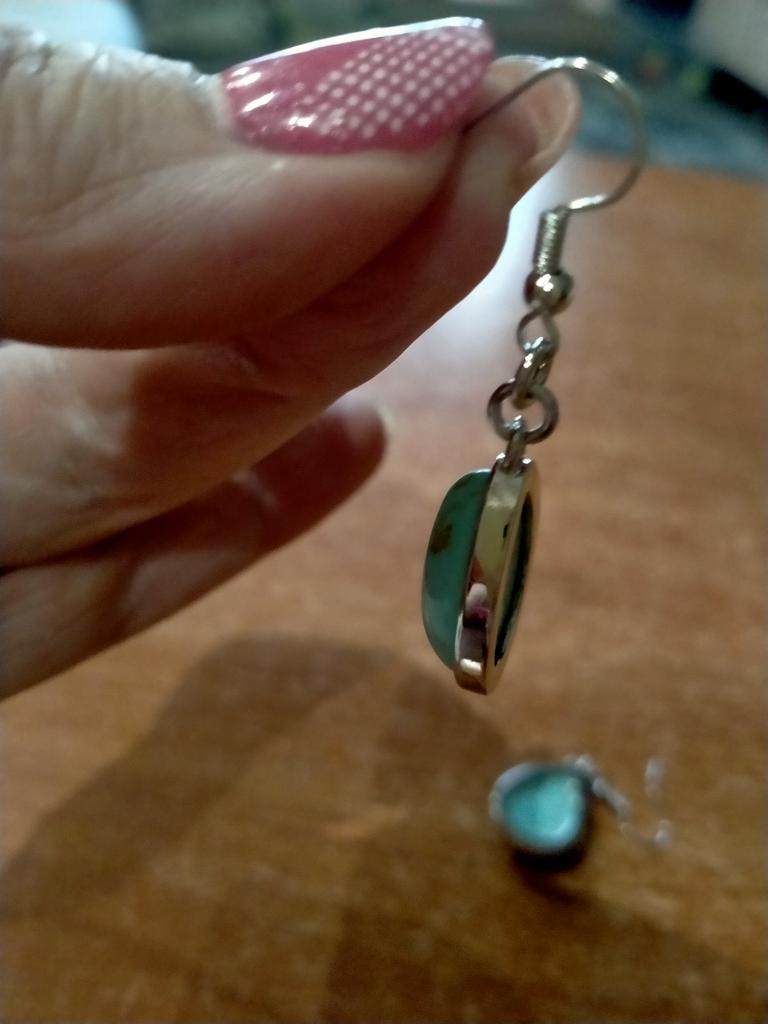 On one earring the “stone” is badly torn, as if something hard had been hit. Packed well