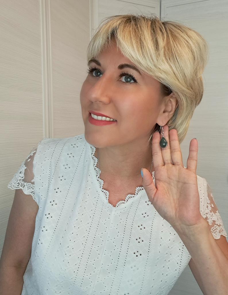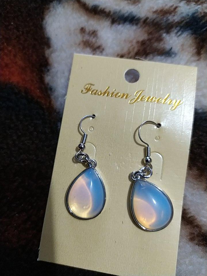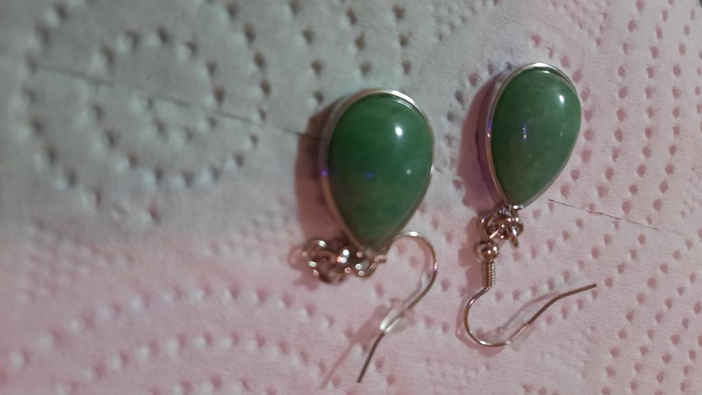 The stone of the earrings is natural, that's why they are a little heavier, but it's bearable! It looks very nice! Thanks to the viewer!