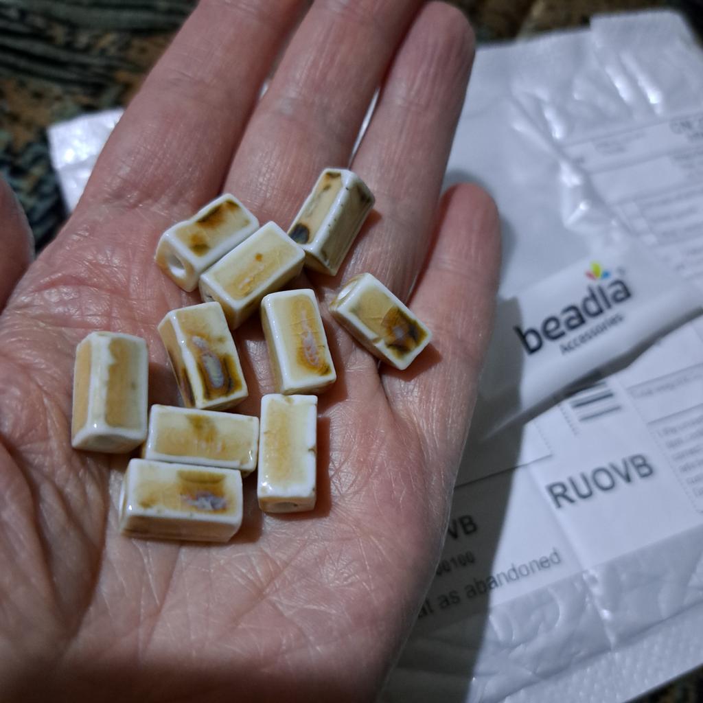 Porcelain, similar to ceramics. Good, although one has small chips, the color doesn’t quite match, but it will blend into the product, it will be fine.😊 There are 10 pcs in a pack.