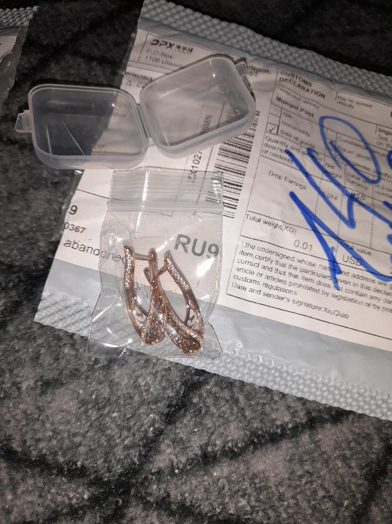 The earrings are very beautiful, correspond to the description. The locks are strong. They came in the same package with other earrings, which are also very beautiful. The seller put 2 pairs of earrings in a box. According to time, the parcel was on the way for 17 days. Thank you seller, thank you Jum.