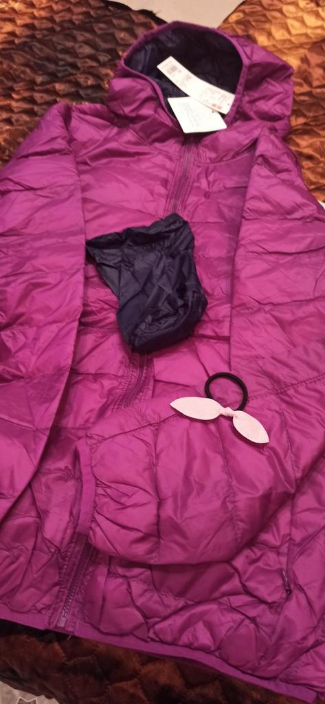 The jacket is good, it can be worn on two sides, but on the other side the seams on the top and bottom of the lock are a little embarrassing. Thank you for the pouch for storing the jacket, I will give the children's scrunchy to someone