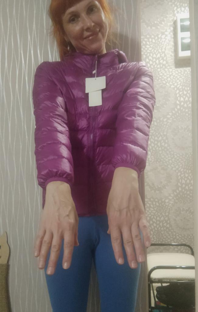 The jacket is light, pleasant and beautiful, according to the presentation picture, light and beautiful colors, but the dimensions do not correspond to those given in the table, needing at least 1-2 sizes larger, the sleeves being particularly short. Delivery was on time, well packaged. It comes with a storage bag and I also received a nice hair elastic as a gift, for which I thank the seller. I recommend, but be careful, to take at least 2 sizes larger than you usually wear!!!