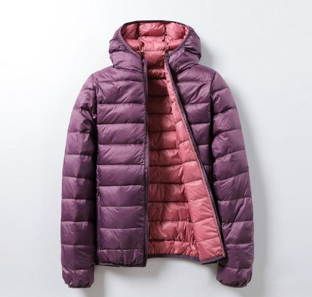 Winter Solid Color Hoooded Causal Fashion Two-sided Thin Short White Duck Down Jacket M-4XL
