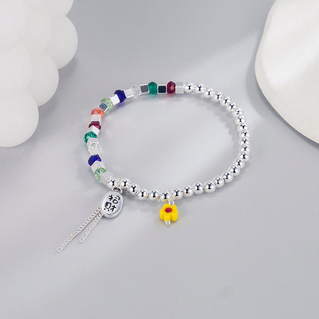 ANENJERY Colored Crystal Beaded Bracelet Women's Niche Design Lucky Fortune Flower Stretch Bracelets Jewelry Accessories