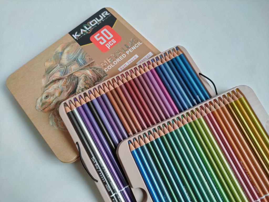50 Colors Soft Wood Metallic Colored Pencils with Tin Box Artist Pencil Kit for Coloring Sketching Drawing