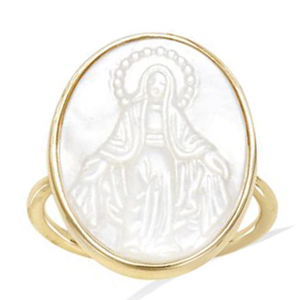 Gold-plated Ring 'Virgin Mary' White Mother-of-pearl Gold - 20x15 Mm