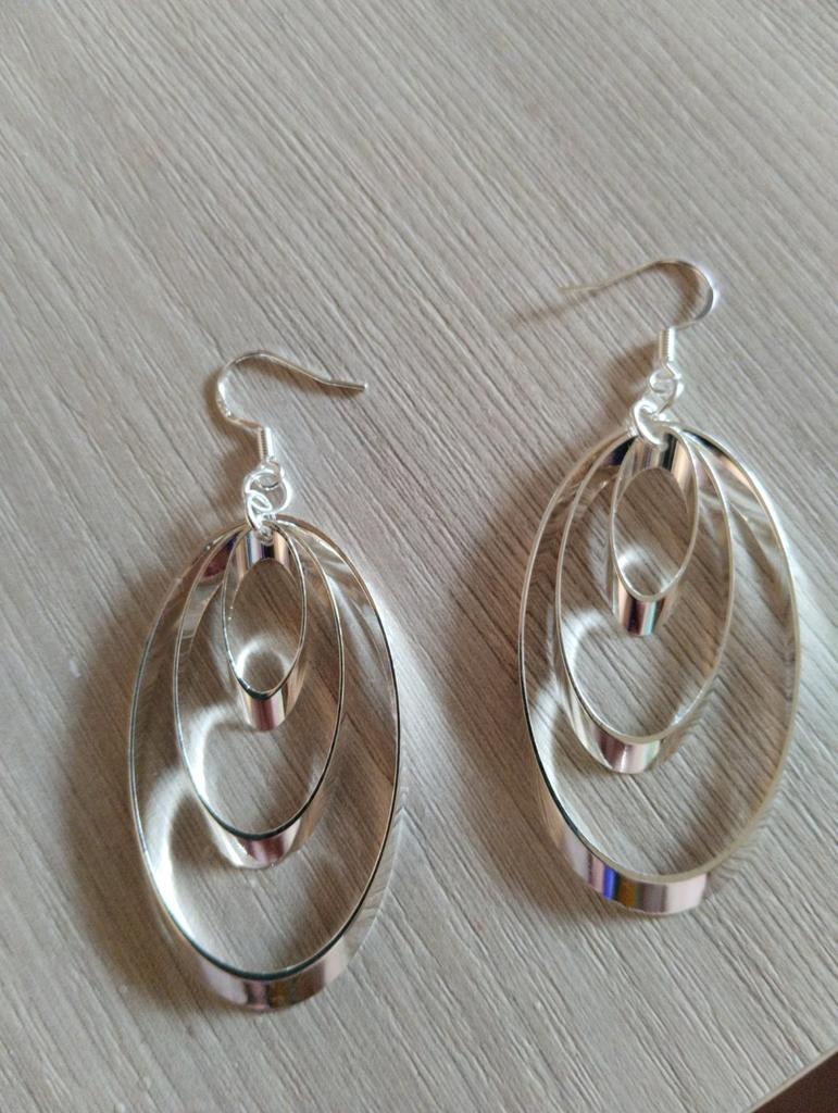 925 Sterling Silver Three Round Circle Drop Earrings Jewelry