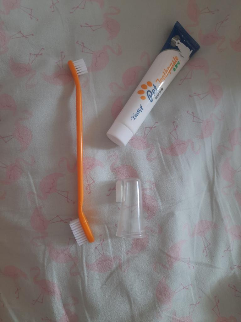 The toothpaste is very good, but the finger brushes are for a large dog, I have a dachshund, so a silicone finger guard is better