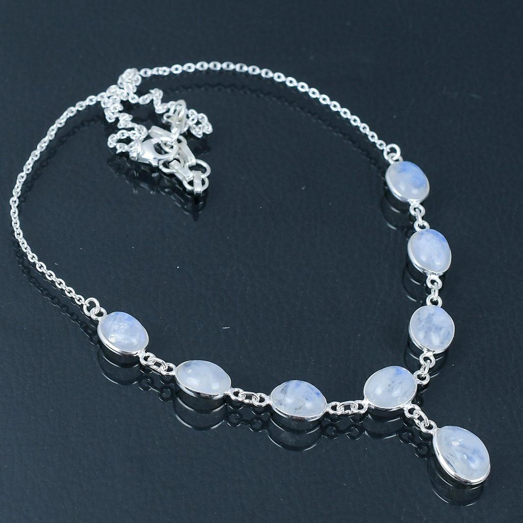 Natural Rainbow Moonstone Gemstone Necklace, 925 Sterling Silver, Handmade Necklace Jewelry Gift for Valentine's Day18"
