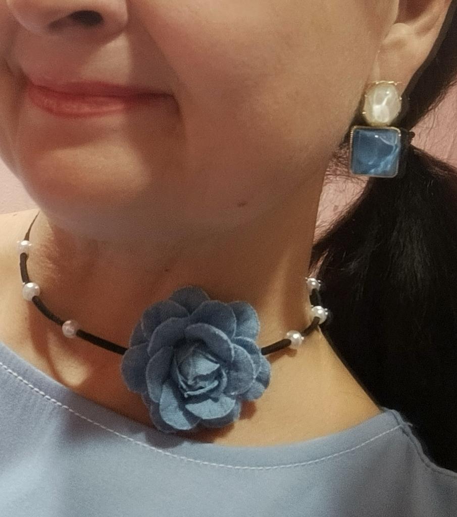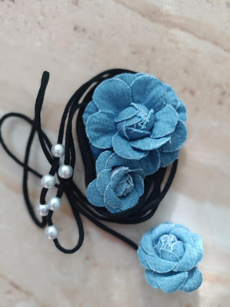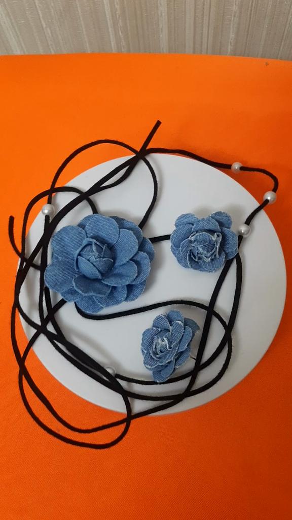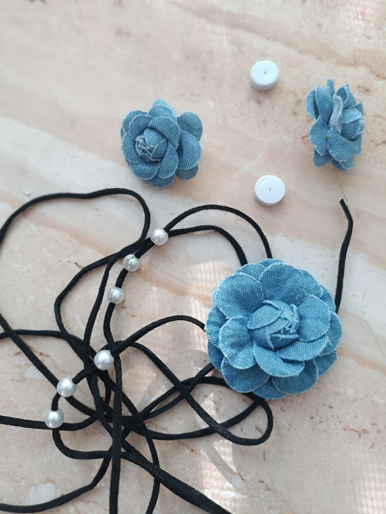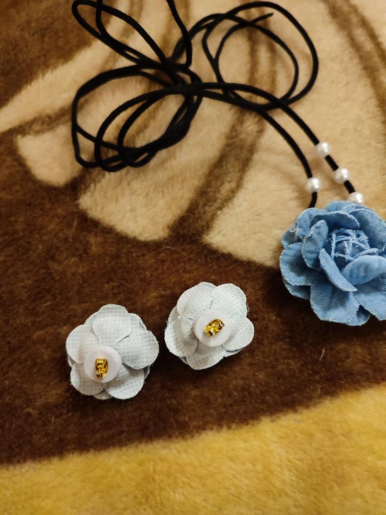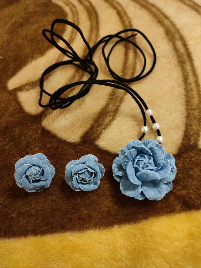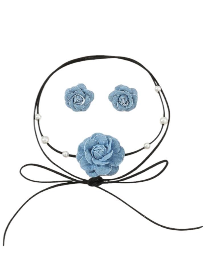 Blue Camellia Flower Stud Ear Necklace Bridal Jewelry Sets Wedding France Lace Up Clavicle Necklaces Earring Pearl Jewelry Women