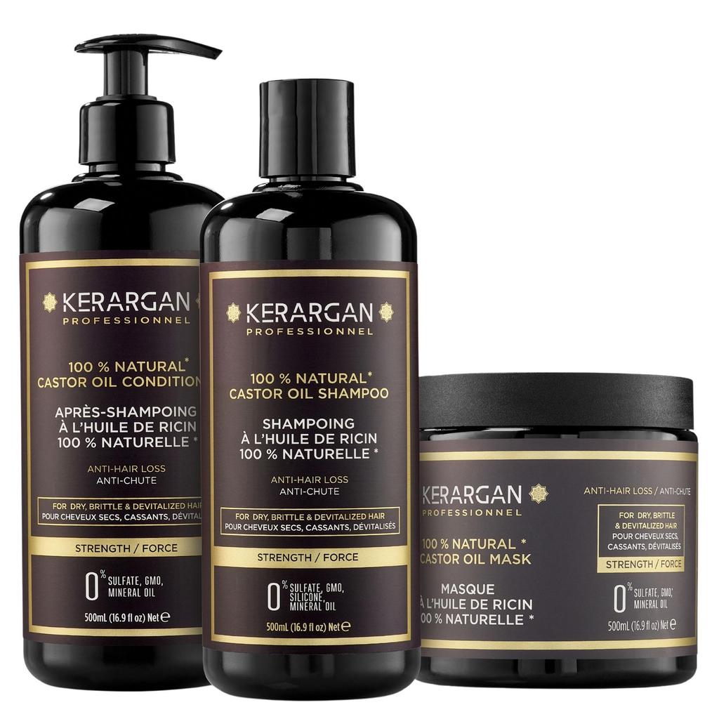 Our shampoo, conditioner and mask kit enriched with Castor oil will strengthen and revitalize your scalp in addition to fortifying the base of the hair and thus limiting hair loss.. Famous since pharaonic Egypt, castor oil was used to strengthen and accelerate hair growth. Today the sensational effects of this almost magical oil are still there.. Rich in fatty acids and minerals, castor oil gives your hair the care it needs. These constituent nutrients of our castor oil kit will increase hair growth tenfold, improve its robustness and all that for your greatest happiness.. Our unique formula sublimates and maximizes its effects by combining Argan oil and chamomile. Their properties give your hair a soft appearance and natural lightening. The exclusive properties of castor oil combined with our know-how and our experience allow us to offer you products that adapt to your needs, both men and women, and to all hair types. ; long, short, thin, thick, curly, straight, frizzy.