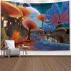 Mushroom Forest Tapestry, Peach Skin Velvet Background Fabric, Polyester Digital Printing Wall Carpet, Room Decoration Hanging Fabric