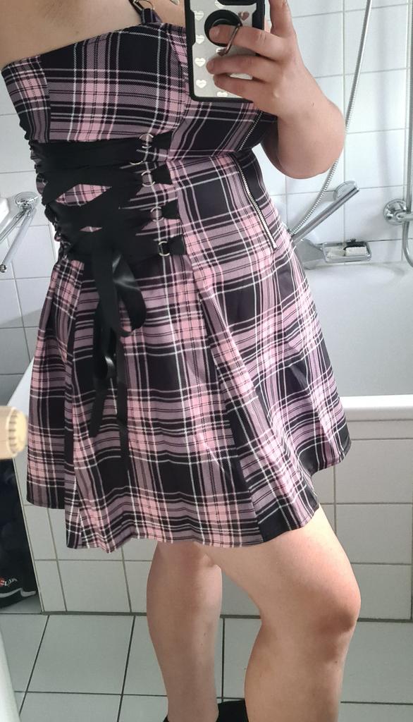 Goth Dark Pastel Gothic Harajuku Pink Women Mini Dresses Plaid Mall Goth Grunge Punk Black Emo Sexy Partywear Lace Up Club Dress