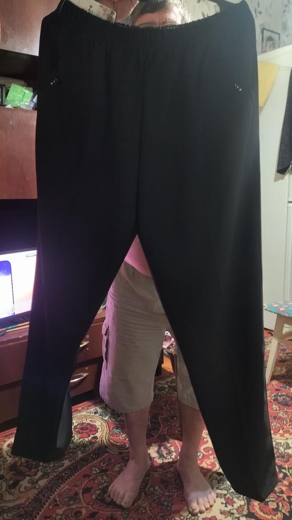 In the picture, they are trousers, but in reality, they are leggings. Very narrow and short. There is no photo because they simply didn't fit!