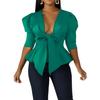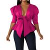 The deep v-neck design adds a touch of sexy to this shirt. With puff sleeve design, this women shirt can make you look stylish and chic.