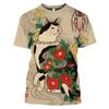 Fashion Funny Samurai Cat Graphic T Shirts For Men Summer Casual Outdoors Cool Personality Printed Round Neck Short Sleeve Tops
