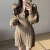 Autumn Winter Knit Knitted Sweater Dress Women Vintage Casual Solid Slim Wrap Long Sleeve Mini Short Dresses Party