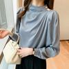 Fashion Autumn Long Sleeve Stand Collar Satin Blouse Shirt Women Tops J296