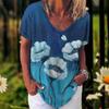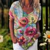 2023 New Women's T-Shirt Summer Vintage Floral Tops Casual Daily V Neck Blouse Fashion Women Oversized Pullover Lady Clothing