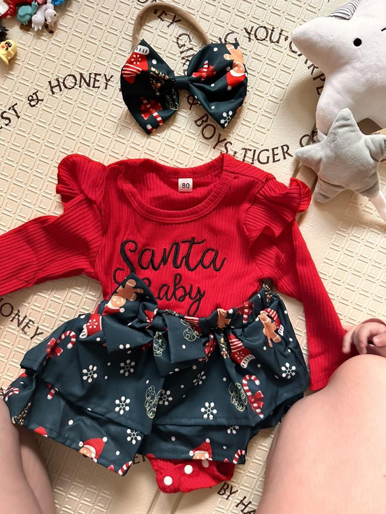 Ma&baby 0-18M Christmas Newborn Infant Baby Girls Rompers Long Sleeve Letter Santa Hat Print Jumpsuit Headband Xmas Outfits