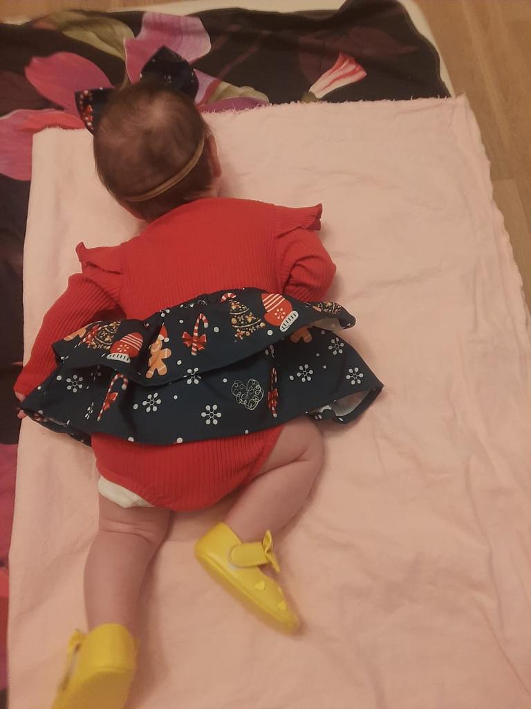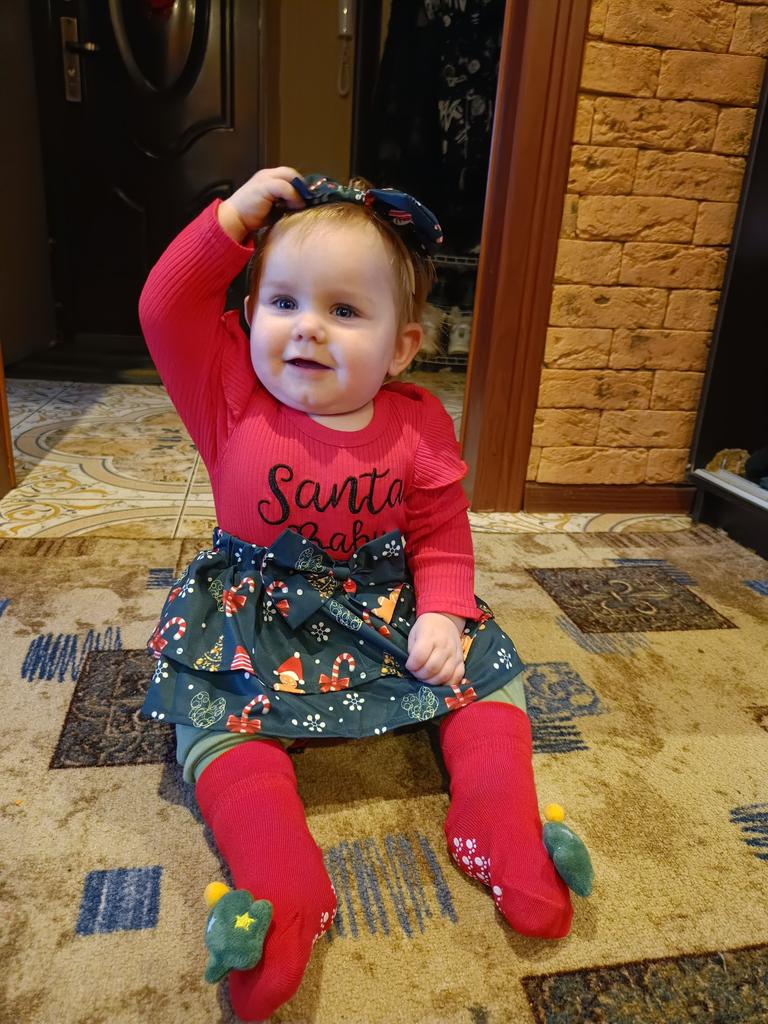Nice dress, I thought there would be a separate skirt, but itโs already sewn on, which adds fluffiness to it! Everything fits true to size, we are now 8 months old, I took sizes 6-9, the sleeve is also a little long!