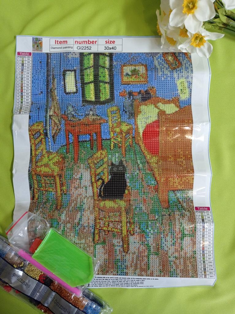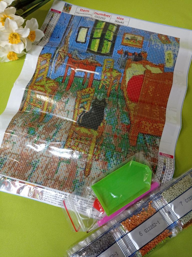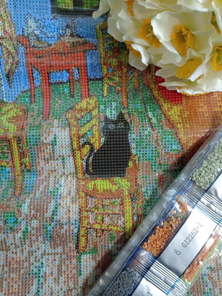 Diamond mosaic "Black cat" 🐈‍⬛ Size 30*40 Diamond mosaic is a great way to spend time with benefit and get positive emotions; distract yourself from everyday worries and can even meditate a little while carefully laying out rhinestones ☺️ The cat is very cute and cuddly 😻 The colors of the rhinestones are bright. As always, the set includes: 🖤 ​​Canvas is an adhesive base-canvas on which we will lay out our rhinestones. The canvas is protected by a transparent film, which I advise you to remove gradually during the process of laying rhinestones 💎. 🖤 ​​Numbered bags with colored rhinestones. 🖤 ​​Plastic tray for rhinestones. 🖤 ​​Stylus. (Pencil with which we capture the rhinestones and transfer them to the canvas). 🖤 ​​Clay. A flat square piece of substance with which we fill the tip of our stylus. Before starting work, it is advisable to straighten and level the canvas. If the information was useful, put it as a favorite ❤️😘 I received the goods in 37 days in a combined package 🚚 The track was tracked completely. The arrival at the point of issue was announced by sms 📲. Packaging: bubble bag and individual packaging. The canvas is twisted into a roll. Everything arrived intact. Goods without defects and defects, without foreign odor. Happy shopping and fast deliveries to everyone 🛍️☺️🚀🐾.
