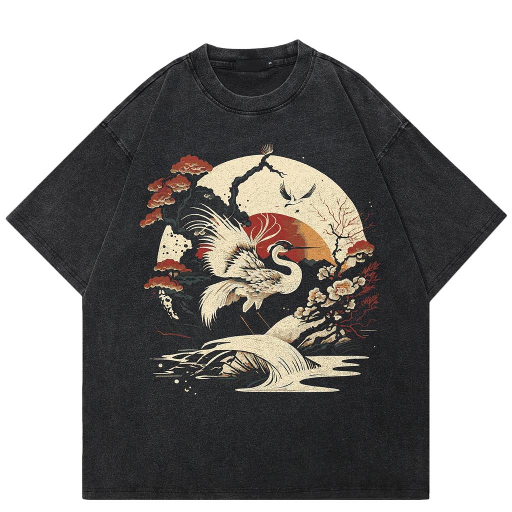 2024 Streetwear Japanese Crane Graphic Unisex T-Shirt