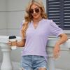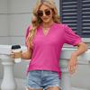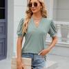 Spring Summer Short Sleeve Blouses Solid V-neck Bubble Sleeve Loose Top for Women