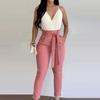 2024 Summer Women's New Print V-neck Waist Tie Design Sense Suspender Two-piece Set for Women